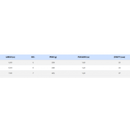 LONGITUD 6 METROS ACCION 30 PLEGADO 144CM PESO 275 SECCIONES 6 LONGITUD 7 METROS ACCION 30 GR PLEGADO 145 PESO 325 SECCIONES 7
