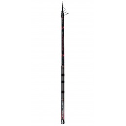 Fabricada en carbono, con la primera anilla abatible y puntero envolvente. Portacarretes a rosca y contera metálica.