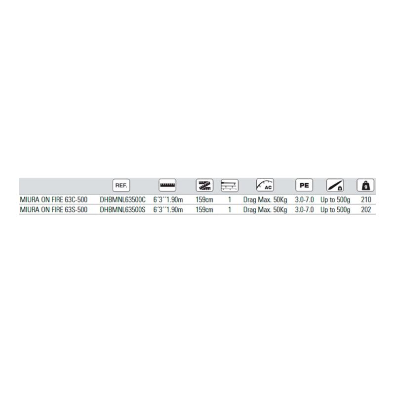 Medida: 2,03 m Acción: Heavy - Fast Línea: 10-20 LB Acción: 3/8 – 2 oz - (10,5 - 56 g)