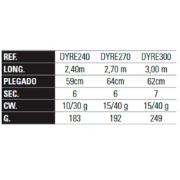 LONGITUD 10´0´´- 3,00m PLEGADO 115cm SECCIONES 5 EGI 2.0-3.5 ACCION 8/28g PESO 121