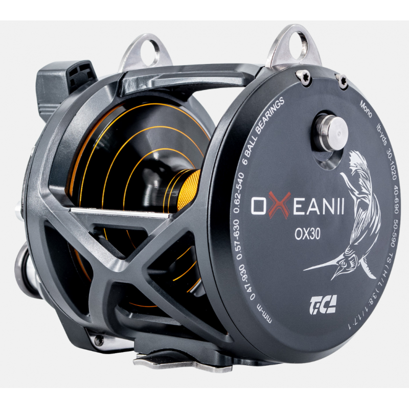 Carretes giratorios creados con el cuerpo y la mecánica del OXEAN 50. Versión monovelocidad ahora disponible en tallas 30, 20, 10 y 5 dedicada a la pesca de curricán en todas sus variantes, desde curricán de bajura hasta curricán vivo. Fabricado con un cuerpo de grafito de alta resistencia, fuerte y ligero al mismo tiempo. La mecánica y los engranajes son de aluminio y acero, lo que confiere a este carrete una recuperación potente, suave y fiable. El embrague accionado por palanca es preciso y seguro. Equipado con un carrete de aluminio forjado torneado con la parte inferior moleteada para evitar el deslizamiento de la línea y el sedal trenzado.