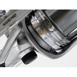La novedad de un carrete único y exclusivo en surfcasting. Fabricado con la última tecnología, incorporando nuevas mejoras en el sistema mecánico. Estructura interna en Magal: una aleación de magnesio aluminio, zinc y manganeso. Nuevo sistema de oscilación super lenta "SLOW OSCILATION SYSTEM" con el que se obtiene un bobinado perfecto en paralelo. "CARBON COMPUTER BALANCE ROTOR" sistema de equilibrado en el rotor central del eje, evitando así las vibraciones en la recogida. Nuevas bobinas de 45mm de alto, diseñada para realizar lances más largos y con menos fricción en la salida del hilo. Microfreno de precisión rápido de potencia de 20 kg. con freno multidisco de carbono. Equipado con 10 rodamientos Japan Ball Bearings sellados y 2 bobinas de aluminio anodizado de 45mm. Sistema de recogida rápida (100cm. por vuelta). Manivela de aluminio de fricción a rosca con rodamiento extra en el pomo. Incluye: Bolsa portacarretes.