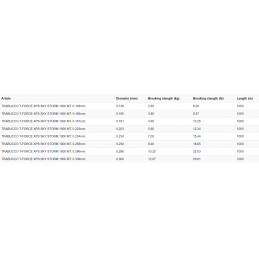 Hilo especial para llenado de carretes. Muy vendido para la pesca de competicion de boloñesa. DIAMETRO RESISTENCIA KG 0,148 2,8 0,165 3,75 0,185 4,6 0,2 5,5 0,22 6,95 0,255 8,4 0,28 9,54 0,3 12 0,35 15,85 0,4 20,2
