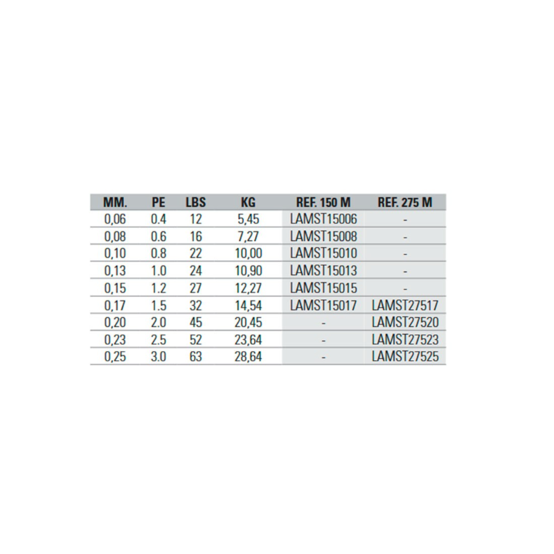 Hilo especial para llenado de carretes. Muy vendido para la pesca de competicion de boloñesa. DIAMETRO RESISTENCIA KG 0,148 2,8 0,165 3,75 0,185 4,6 0,2 5,5 0,22 6,95 0,255 8,4 0,28 9,54 0,3 12 0,35 15,85 0,4 20,2