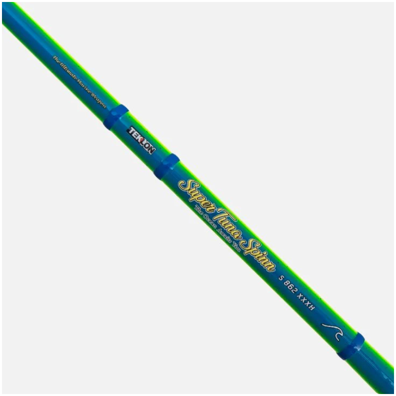 ¡Siéntete poderoso! Teklon® Super Tuna Spinn 862 XXXH está construida con un blank rígido de carbono de alto módulo Carbon X-Force, con respuesta rápida tanto en el lance como en la clavada. Diseñada con alta reserva de potencia en el primer tercio de la caña para proporcionar seguridad al luchar con los peces propios de la pesca a “Popping”, como grandes atunes, dorados, y serviolas.