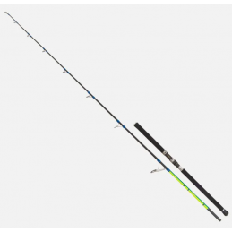Caña fabricada en carbono con anillas LVSG y portacarretes Fuji DPS. Con una acción semi punta ideal para para la pesca de cefalópodos. Mango ergonómico de EVA.