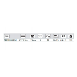 Longitud: 2.59 m Secciones: 2 Peso Señuelo: 1.5-3.5 Peso Línea: 0.4-1.0 Peso: 89 g Acción: Regular