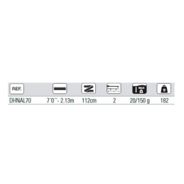 Longitud: 2,55 m Peso: 112 gr Peso del señuelo recomendado: 8-28 gr Puntera: tubular Blank: carbono tubular, acción rápida (Fast Action) Línea recomendada: PE 0.6–1.2