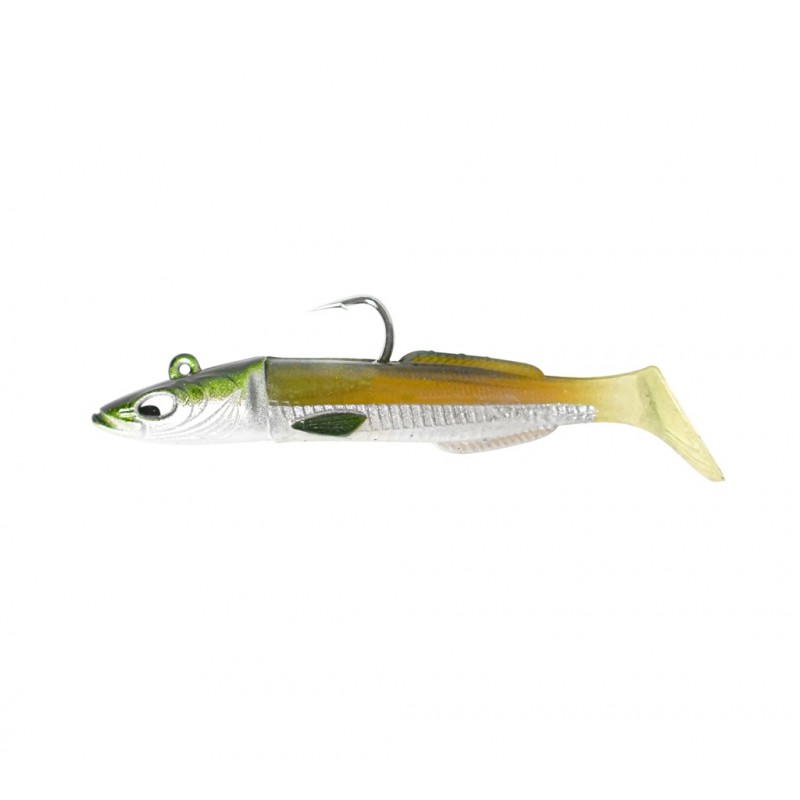 Jig asimétrico con dos posibles puntos de colocación de su potente anzuelo, en la cola o en la parte baja del cuerpo. Su movimiento frenético de ondulación en recogida lineal es ideal para depredadores de ataque rápido.